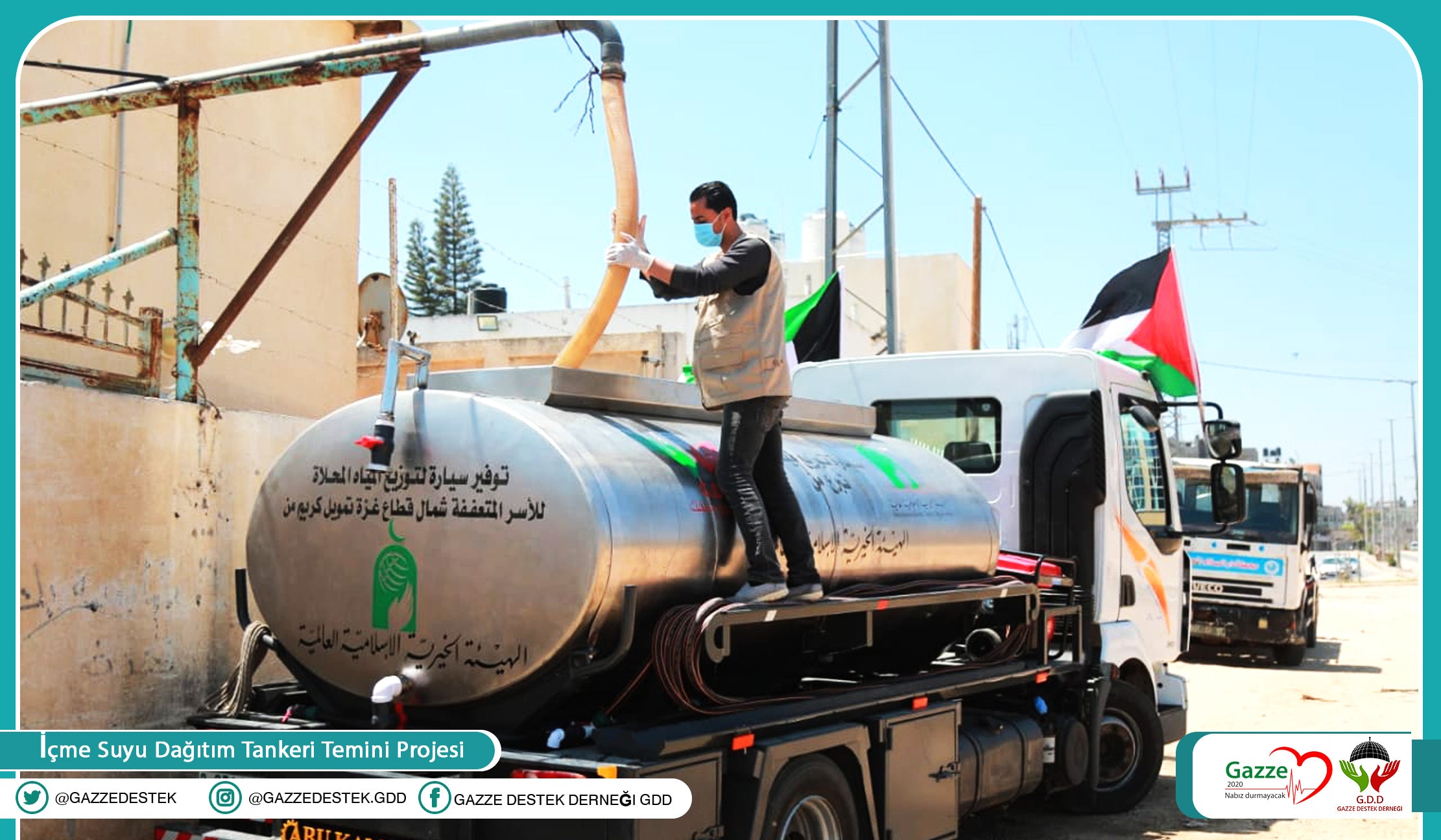 Due to the generous fund offered by the International Islamic Charity Organization, Gazze Destek Association implemented the project of providing a water vehicle with a tank to distribute desalinated drinking water to poor families in the northern Gaza Strip, serving 200 families monthly.